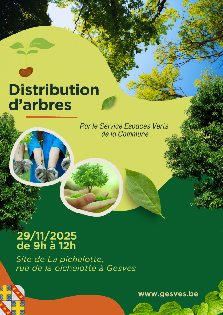 Chaque année, la Semaine de l’Arbre est un moment incontournable pour toutes celles et ceux qui souhaitent embellir leur cadre de vie, encourager la biodiversité ou simplement passer un agréable moment au cœur de la nature. Cette édition 2025 ne fait pas exception : la Commune de Gesves et son Service Espaces Verts vous invitent à participer à la distribution de plants ce samedi 29 novembre, de 9h à 12h, Rue de la Pichelotte.