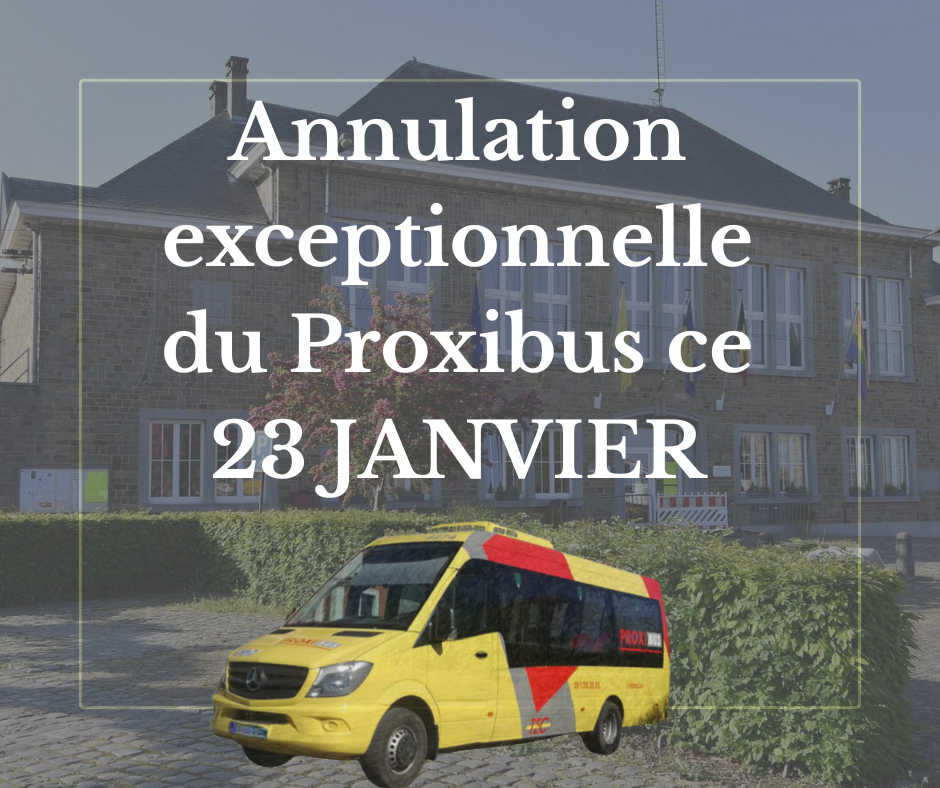 Petite info pratique : le 23/01, le Proxibus ne circulera exceptionnellement pas vers le marché d’Andenne. Merci pour votre compréhension